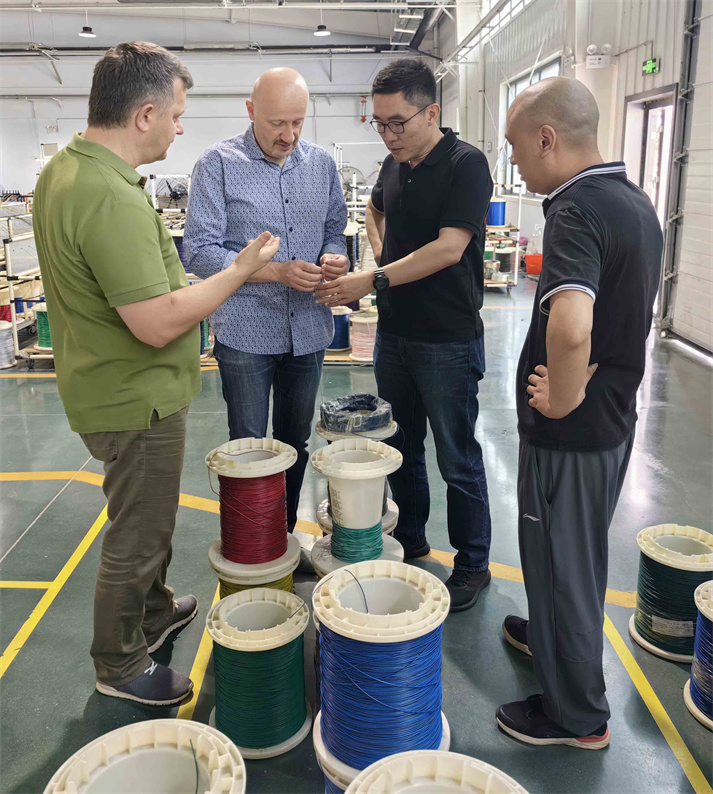 考察團(tuán)一行先后參觀了線束生產(chǎn)車間和導(dǎo)線生產(chǎn)車間,在參觀過程中,劉忠明為客戶詳細(xì)介紹了創(chuàng)大線束各項生產(chǎn)工藝流程、質(zhì)量控制、研發(fā)創(chuàng)新等情況。參觀結(jié)束后,考察團(tuán)對我公司的廠區(qū)環(huán)境、生產(chǎn)能力、工藝水平、設(shè)施設(shè)備等各方面表示充分的肯定。